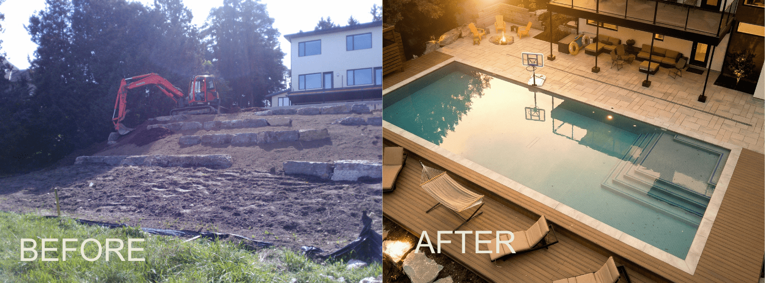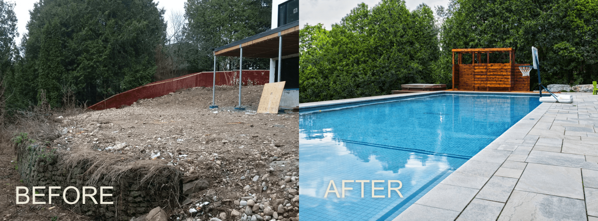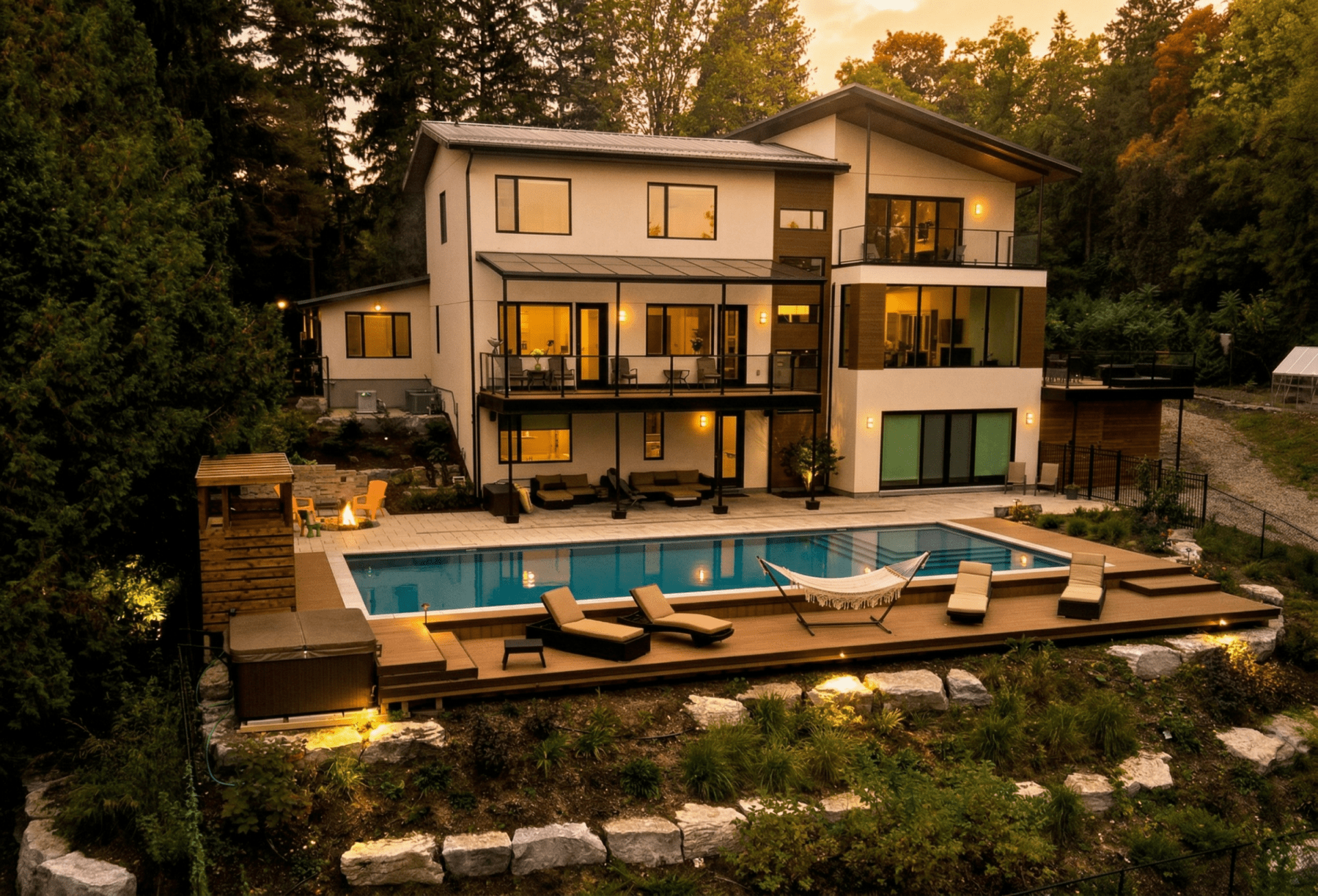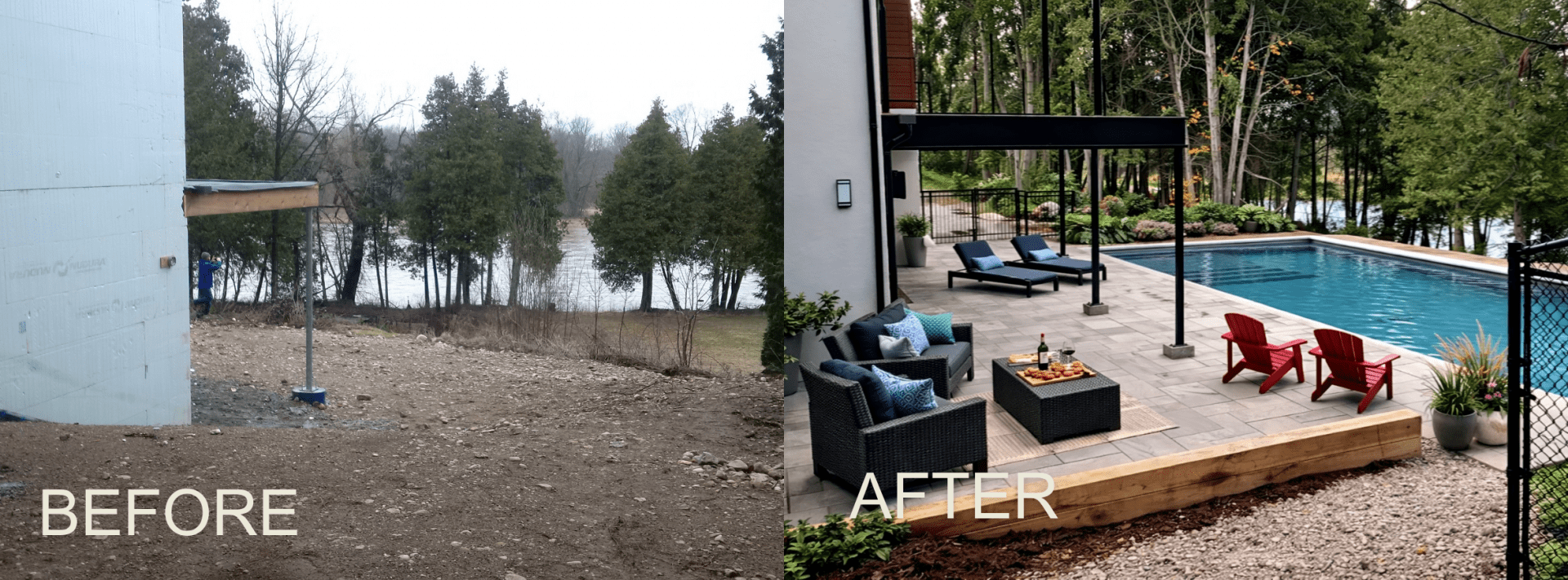 This project in the Waterloo Region of southern Ontario was all about building a backyard that works like a destination. The homeowners wanted a space that felt modern and calm—easy to use every day, comfortable for entertaining, and thoughtfully organized so the pool area didn’t feel disconnected from the rest of the property.