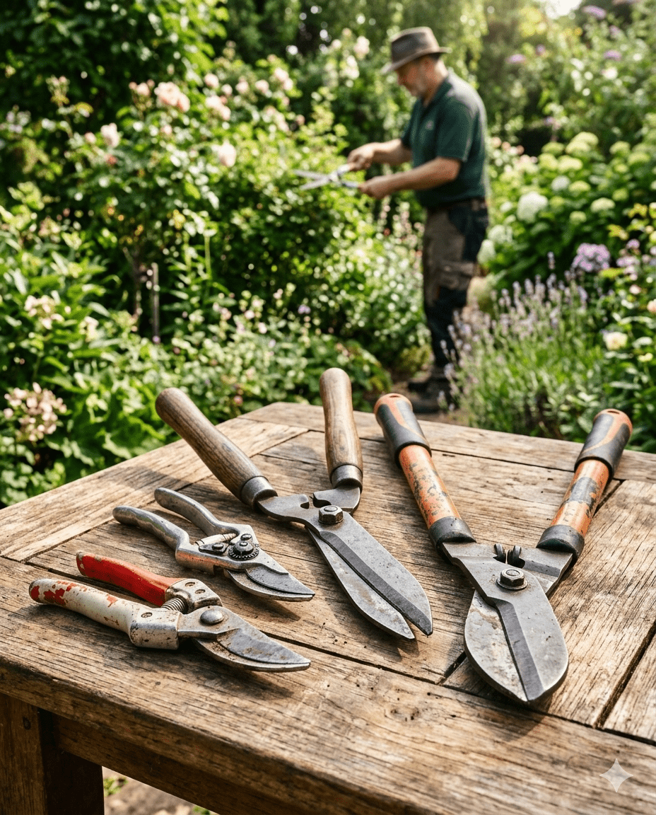 A quality pair of hand pruners, loppers for thicker branches, and occasionally hedge shears. Sharp tools make cleaner cuts and healthier plants.