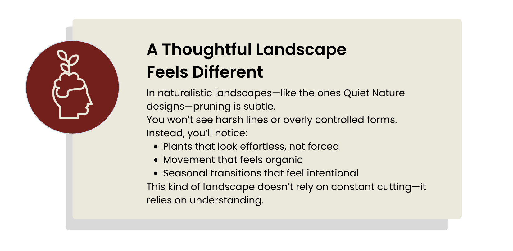 Pruning, when done well, isn’t about control—it’s about stewardship. It’s how you guide your landscape toward health, longevity, and beauty without forcing it into something unnatural.